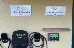 Ladestation für E- Autos (gegen Entgelt) und E-Bikes vorhanden